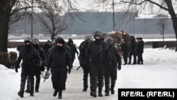 После панихиды у Соловецкого камня силовики начали вытеснять людей с площади и задерживать их.